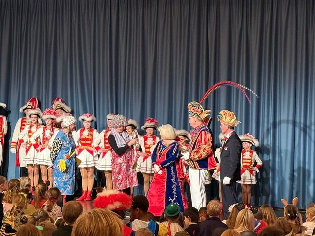 Für ein buntes Bühnenprogramm sorgten u.a. zwei als Putzfrauen verkleidete Lehrerinnen mit Ihrer Putzshow, kleine Zauberschüler, die Kunststücke präsentierten, einige Klassen, die u.a. zu „Hands up“, „Karnevalsmaus“ und „Gute Laune“ tanzten.