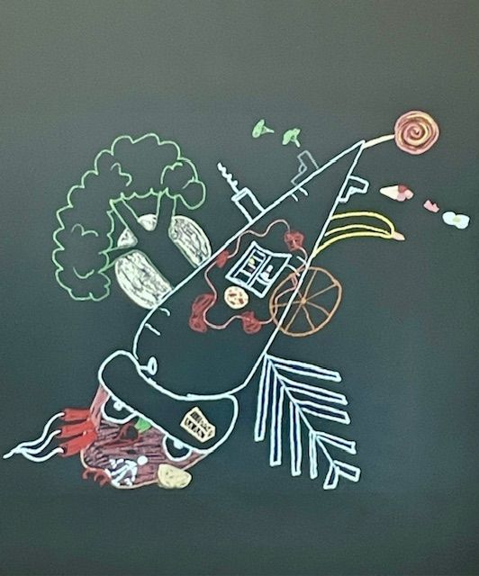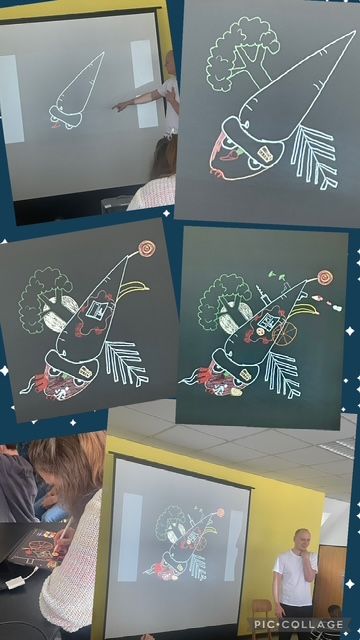 Alle waren mit Feuereifer dabei und besonders fasziniert hat alle die fantasievolle Rakete, die Svenja Kretschmar nach den vielfältigen Ideen der Kinder direkt vor Ort für uns gezeichnet hat.